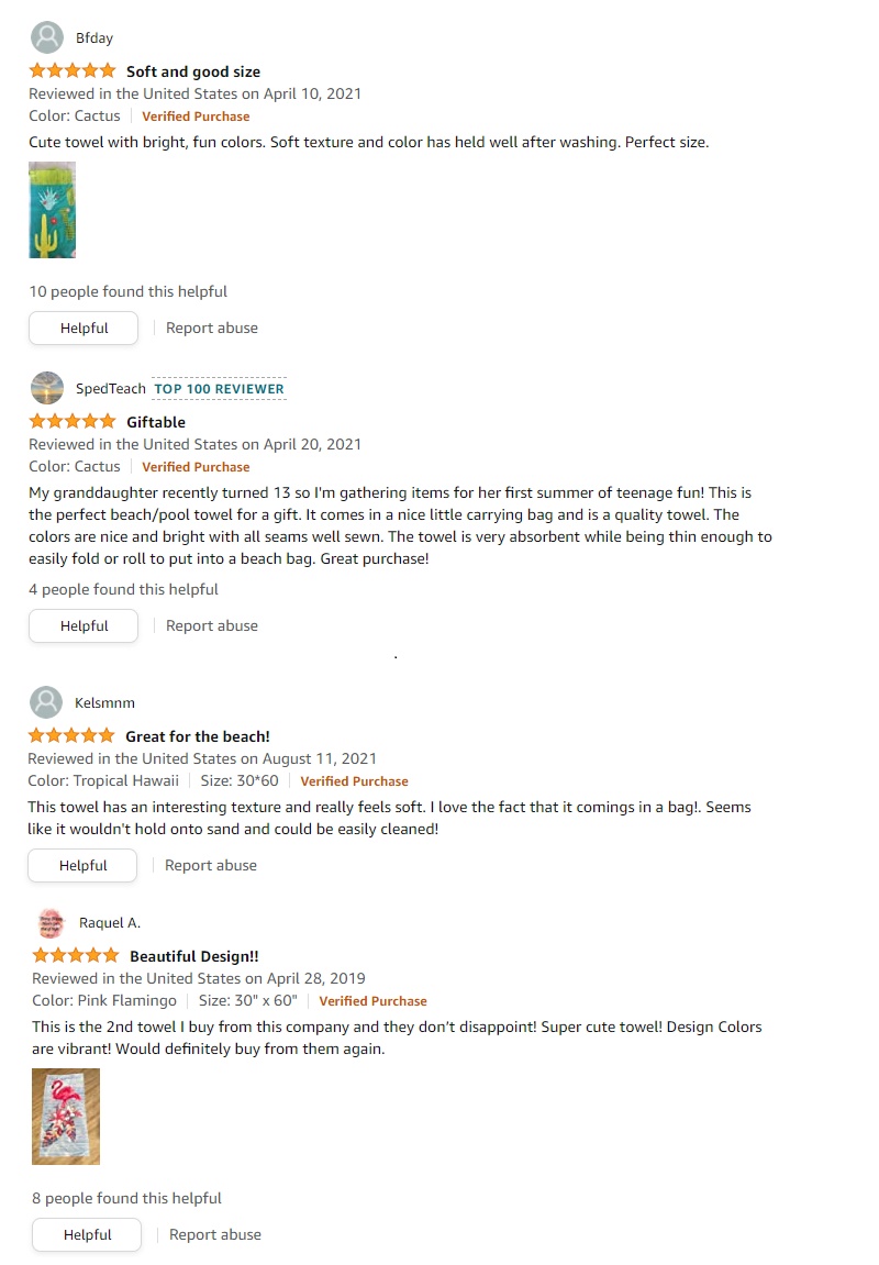 Comments from Customers for Our Towels: